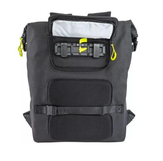 Reppu 'Mika' varustaa sinut täydellisesti päivittäiseen matkaasi toimistolle tai kun menet järvelle auringonlaskun aikaan. QiO:n 17 litran reppu tarjoaa tarpeeksi tilaa viedäksesi työpaperit ja tiedostot töihin. Kannettavalle tietokoneelle on myös erillinen irrotettava neopreenijärjestäjä. Voit ottaa mukaasi myös juomia ja välipaloja tähän rullattavaan reppuun viihtyisään iltaan ystävien kanssa. Jos sataa matkalla kotiin, 'Mika' pitää tavarasi kuivina, koska se on valmistettu vedenpitävästä PU-materiaalista ja täyttää siten IPX3-standardin. Heijastimet ja integroitu LED-valo (ilman paristoa) varmistavat myös, että näyt paremmin vähäisessä näkyvyydessä tai pimeässä. Pehmustetun selän ja olkahihnojen ansiosta voit käyttää 'Mikaa' aina mukavasti. Hook-On-järjestelmän avulla voit myös kiinnittää sen telineeseen helposti - juuri niin kuin haluat.